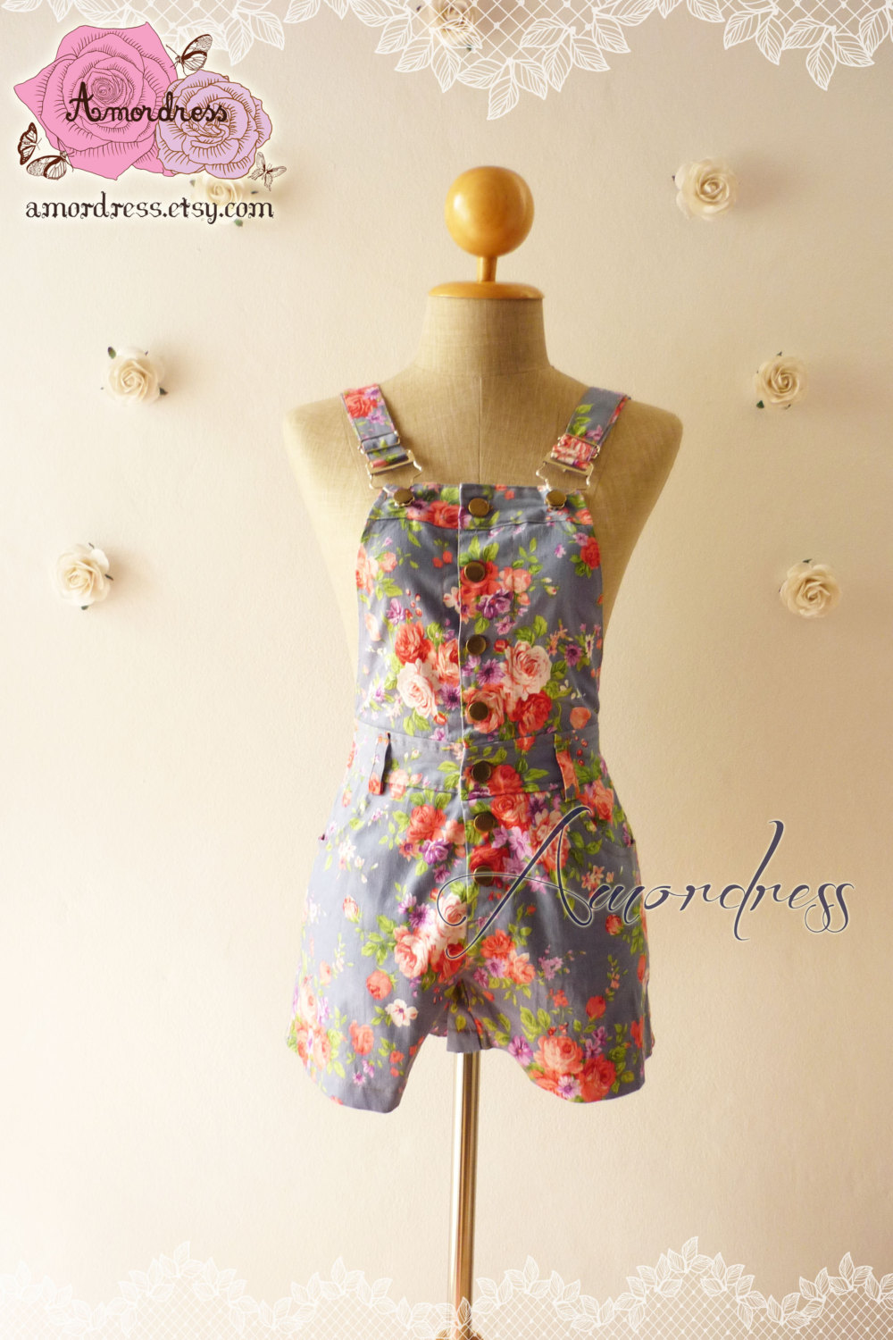 Floral Skirtalls Overall Shorts // Overall Jumper // Summer Overall // Denim and Rose Overall // Jumper -XS-